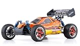 The Exceed RC Sunfire EP Buggy is packed with loads of features that will provide hours of action packed off road smashing. The 2.4ghz transmitter and receiver system ensures you will have excellent communication between driver and vehicle. The transmitter also allows dual-rate adjustments for throttle and steering so you can fine tune the power delivery and steering control of this buggy. The power-train is reinforced and will handle extreme terrain. Metal geared front and rear differentials are driven by an aluminum center driveshaft and distributes the power to all four wheels. The power department is handled by a brushed 540 motor and supported by a 7.2v 1800mah Ni-Mh battery with charger included. Camber and toe settings are adjustable
